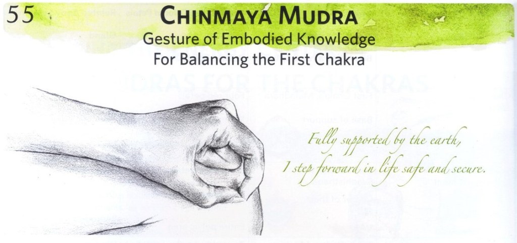 “Mudras for Healing and Transformation” has a whole chapter dedicated to mudras for the chakras, called Balancing the Energy Centers. It recommends one specific mudra for each of the main seven chakras, aiming at “directing breath, awareness and energy to each individually, releasing energetic blockages and reestablishing the flow of vital energy.” I usually share the corresponding mudra before and/or after a dance therapy workshop focusing on a specific chakra.